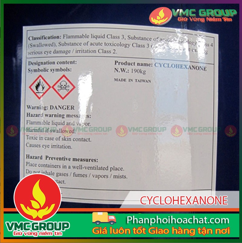 ✅ Sản phẩm CYCLOHEXANONE (CYC, ANONE) C6H10O được sử dụng trong: -Công nghiệp keo dán: Cyclohexanone là chất phụ gia trong keo dán PVC để điều hoà tốc độ bay hơi. – Hóa chất: Cyclohexanone dùng làm dung môi cho thuốc trừ sâu và diệt nấm. Cyclohexanone là nguyên liệu để tổng hợp chất hữu cơ đặc biệt trong sản xuất acid adipic, acprolactam và nylon6. Cyclohexanone là nguyên liệu để sản xuất thuốc diệt cỏ, các loại amine, chất nhũ hoá, antihistamine và chất xúc tác trong tổng hợp nhựa polyester. -Thuộc da: Cyclohexanone dùng làm chất tẩy trắng và là phụ gia làm tăng độ bám dính của lớp sơn màu. -Sơn phủ: Cyclohexanone dùng làm phụ gia trong sơn phủ bề mặt : chống ẩm đục cho lacquer nitrate cellulose, tăng đọ chảy cho lacquer cellulose acetate và chất tẩy sơn. Thành phần trong hỗn hựop dung môi cho PVC và mực in Cyclohexanone là nguyên liệu để tổng hợp các loại nhựa khác. -Dệt: Cyclohexanone dùng làm phụ gia trong dung dịch ngâm kiềm và aluminium soap để ngâm sợi. -Bao bì: Đồng dung môi cho cellulose nitrate trong sơn phủ cellophane. |