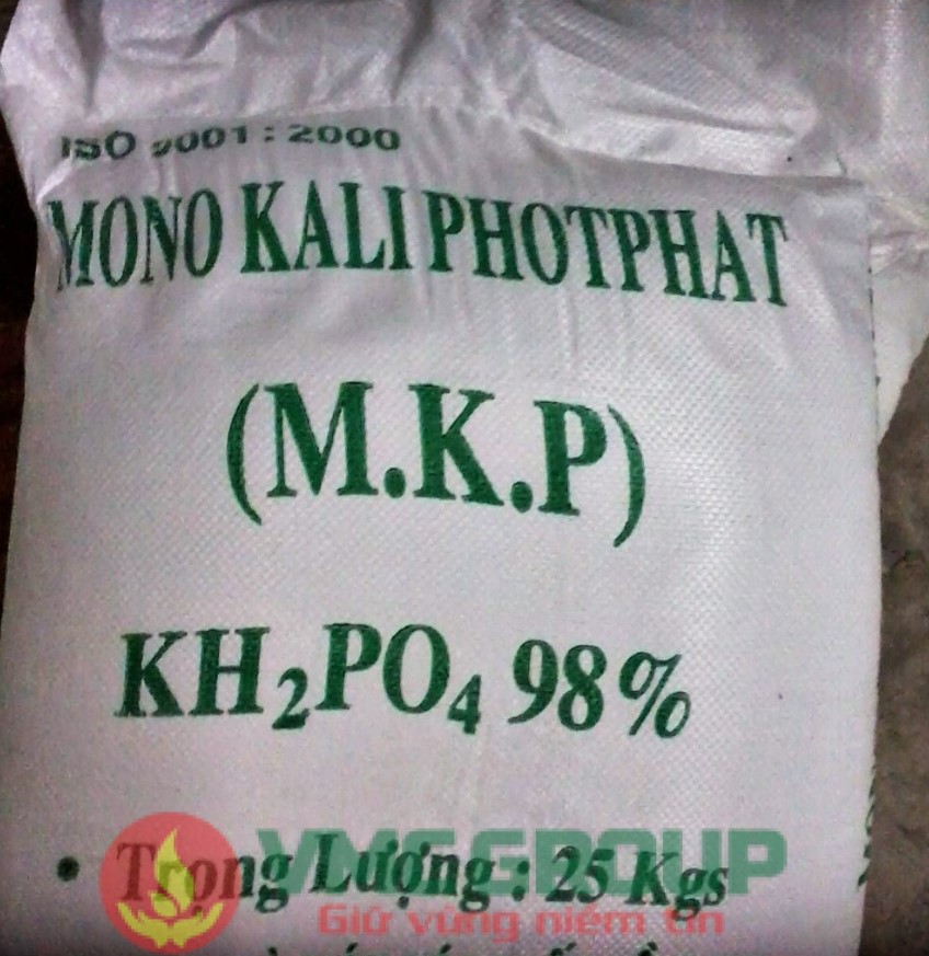 - Kali phosphate (KH2PO4) hay còn gọi là MKP: Chứa 35% K2O và 52% P2O5. Do giá thành khá cao nên loại