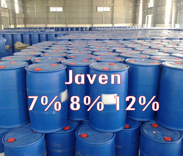 ✅ Sản phẩm Javen 12% – NaClO – Sodium Hypochloride được sử dụng trong: Javel hay là nước Javen là hỗn hợp khí sục Cl2 dư vào dung dịch NaOH: Cl2 + 2NaOH → NaCl + NaClO + H2O. – Nước Javel có tính tẩy màu vì nó có chứa NaClO. Tương tự như HClO, NaClO có tính oxi hóa rất mạnh nên phá vỡ các sắc tố màu sắc của các chất, phá vỡ cấu trúc sinh học của vi sinh vật. Vì thế, Nước Javel được dùng làm thuốc tẩy trắng, tẩy trùng trong công nghiệp cũng như trong gia đình và y tế. – Được dùng trong các ngành công nghiệp và du lịch: Tẩy vải, wash nhuộm và xử lý khử trùng, diệt khuẩn trong ngành thủy sản, chăn nuôi, sản xuất tinh bột, tinh bột biến tính, xử lý nước thải, nước hồ bơi, xưởng gốm sứ. – Javen dùng trong khử trùng làm sạch nước sinh hoạt, sát trùng nhà ở, bệnh viện , nhà vệ sinh. – Javen được sử dụng trong ngành giấy – dệt nhuộm |